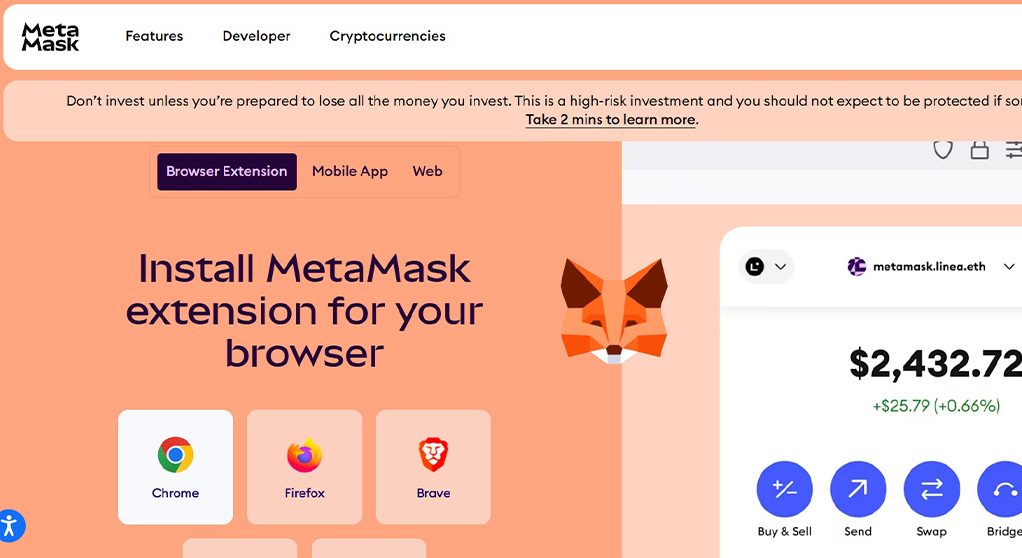 ابتدا وارد سایت رسمی متامسک به آدرس metamask.io شوید.
