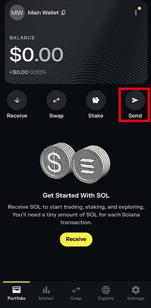 در صفحه ارز سولانا، روی گزینه «Send» بزنید.